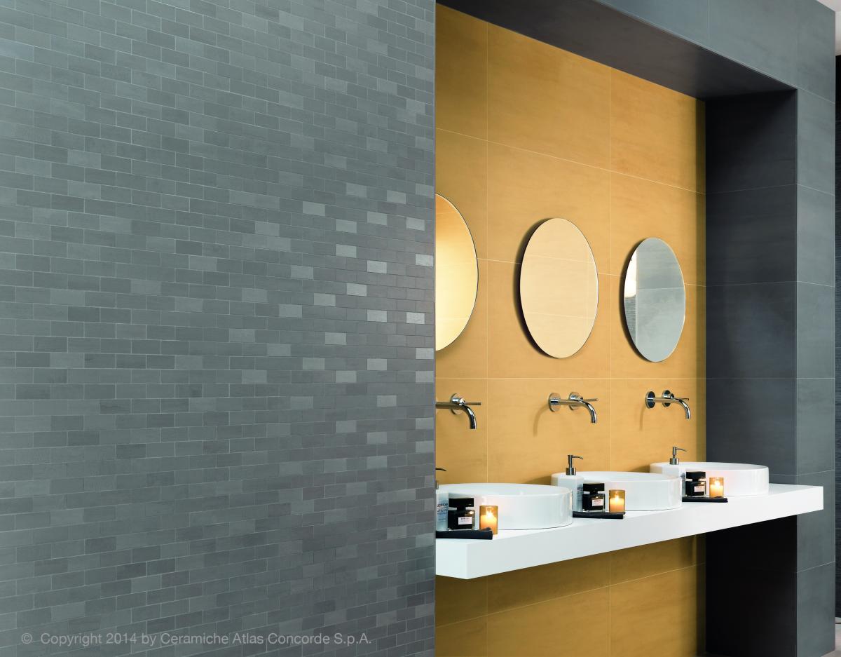Moderne neutrale Farben, warm und kalt, werden durch intensive trendige Farbtöne ergänzt und ergeben einen Wandbelag voller Energie und Ausdruckskraft.