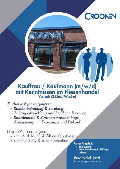 Bei Interesse geht die Bewerbung an: bewerbung@croonen.de